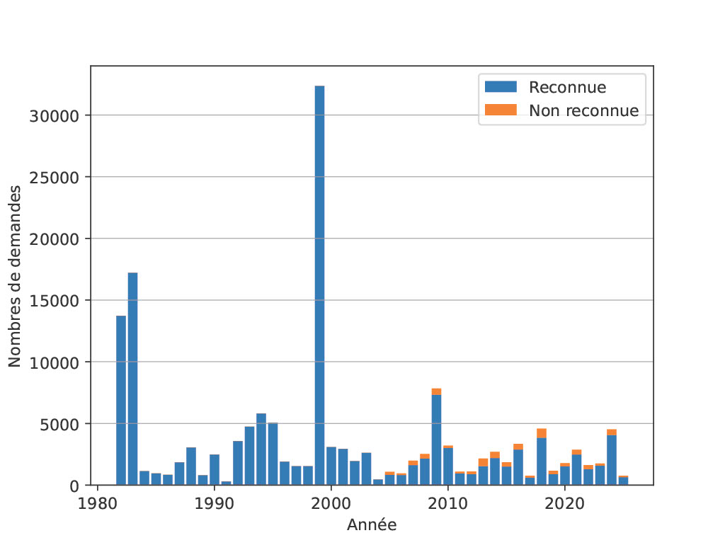 Nombre de reconnaissances CatNat au titre sécheresse (données CCR)