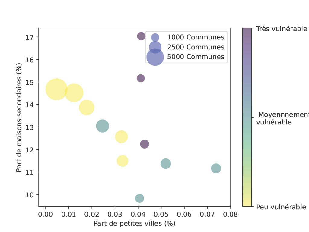 Part de maisons secondaires dans chaque groupe de communes en fonction de la part de petites villes.