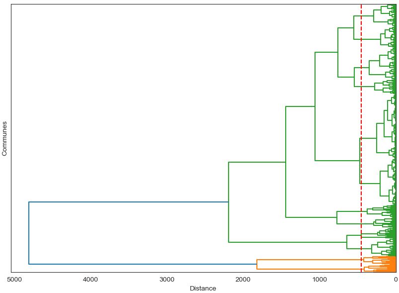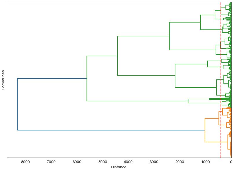 Le dendrogramme illustre les rapprochements entre les communes qui sont fusionnées à chaque tour dans des groupes agrégés.