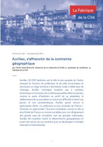 Aurillac, 26 000 habitants, est la ville la plus peuplée du Cantal, exerçant la fonction de préfecture et de pôle économique et structurant un large territoire à dominante rurale à faible taux de chômage. Aurillac n’échappe toutefois pas à certaines dynamiques communes à de nombreuses petites villes moyennes, comme la perte d’habitants au profit de sa périphérie, le vieillissement de sa population ou encore la difficulté à retenir ses jeunes. À ces caractéristiques, Aurillac ajoute encore la particularité d’être « la préfecture la plus enclavée de France ». Obstacle ou opportunité ? Souvent considérée comme la ville la plus froide de France ou encore accablée pour son éloignement des grands axes de circulation vers les grandes métropoles, Aurillac fait toutefois mentir le déterminisme géographique en jouant des atouts de son territoire pour se développer à l’échelle nationale et internationale.