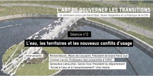 Les trois intervenants de cette séance ont voulu mettre en lumière quelques aspects des mutations dont ces conflits étaient porteurs : Corinne Larrue (professeure honoraire à l’UPEC), en les comparant aux conflits d’usage précédents et aux réponses qui y avaient été apportées ; Michel Bisson (Président de Grand Paris Sud), en les traduisant en défis et perspectives pour les politiques territoriales ; Geneviève Leboucher (représentante de Veolia), en soulignant les limites du modèle économique actuel de l’eau. Cette note est la synthèse de ces interventions, ainsi que des réflexions et échanges qu’elles ont suscités.