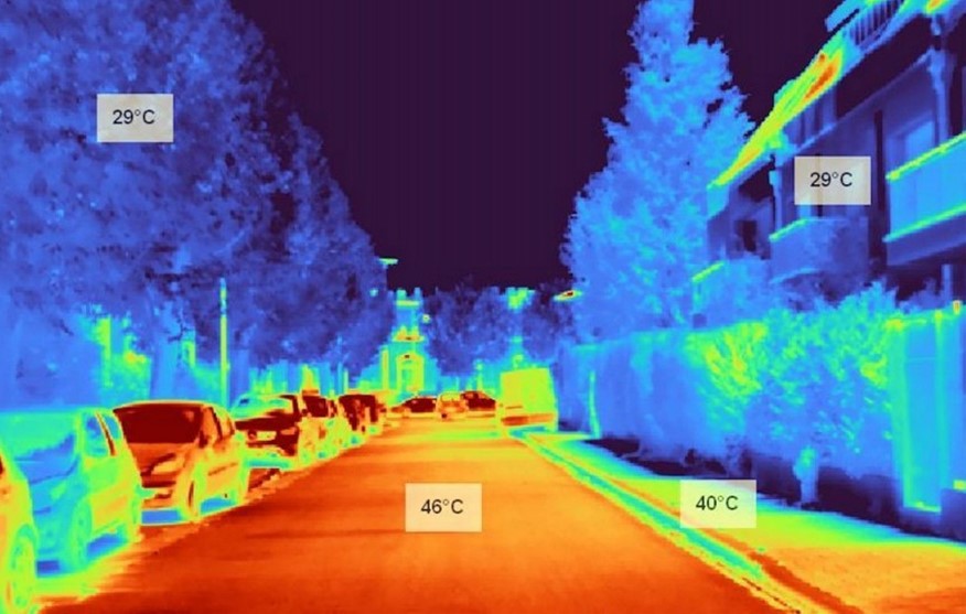 Augmenter la nature en ville (arbres, parcs, toitures et façades végétalisées) permet – grâce à l’ombrage produit et la transpiration des végétaux en été – de réduire significativement la température ambiante et de lutter contre l’effet « îlot de chaleur »23. Selon l’Agence De l’Environnement et la Maîtrise de l’Énergie (ADEME), l’écart de température entre une façade ensoleillée et la même façade ombragée peut dépasser les 10°C24. Cet effet rafraîchissant est particulièrement efficace dans les zones plus vulnérables à l’effet d’îlot de chaleur comme les parkings ou les cours d’école.