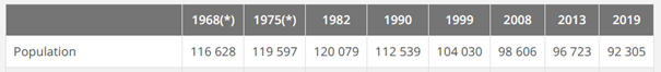 Depuis les années 1980, la population est en baisse constante et a perdu plus de 20 000 habitants.