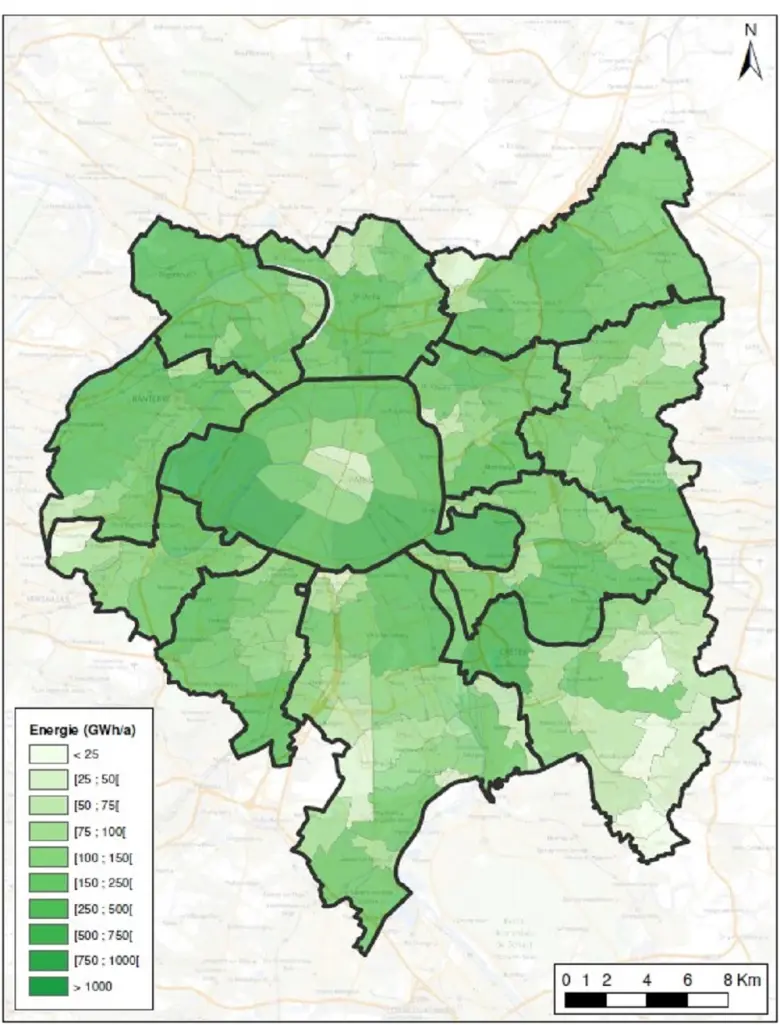 C’est ainsi qu’est né le projet Unigéo. C’est un projet de réseau de chaleur géothermique3 , qui s’étendait initialement sur trois communes – Pantin, Les Lilas et Le Pré-Saint-Gervais – auquel s’est joint plus récemment Romainville. Le potentiel géothermique de la Seine-Saint-Denis et plus généralement de l’Île de France est bien connu. Le Bureau de Recherches Géologiques et Minières (BRGM) l’a largement documenté et certains réseaux de géothermie ont plus de quarante ans dans la Région. L’Île-de-France présente un des plus forts potentiels en géothermie.