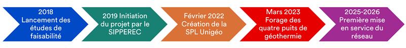 Ainsi, la mise en œuvre du réseau Unigéo, sur le point d’aboutir, est le fruit d’une histoire plus longue que la simple histoire du projet sur le territoire. Les précédentes tentatives et essais infructueux d’installation d’un réseau de chaleur géothermique ont permis de maturer les modalités du projet et de mettre en évidence les verrous à lever pour exploiter cette énergie renouvelable.