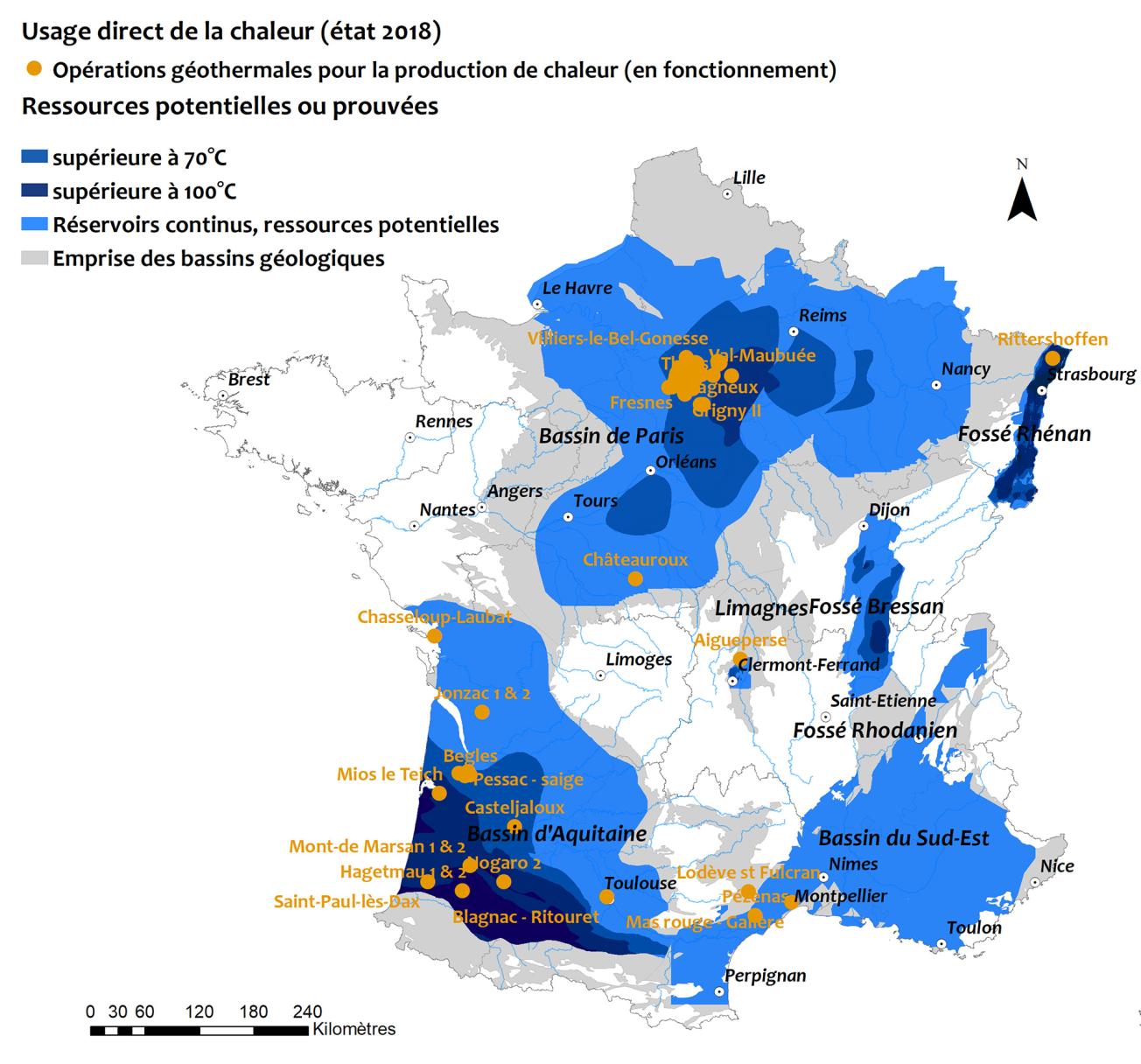 Le réseau d’Unigéo exploite le Dogger – une couche géologique atteinte à 1600 mètres de profondeur environ dans l’Est parisien – et permet l’utilisation d’une géothermie profonde. En effet, sur un réseau d’une telle envergure, les études de faisabilité montrent que c’est la géothermie de moyenne à haute énergie, c’est-à-dire profonde, qui est nécessaire. Pour des pompes à chaleur géothermiques qui ne chauffent qu’un bâtiment par exemple, c’est la géothermie de faible énergie, peu profonde, qui est privilégiée4 .