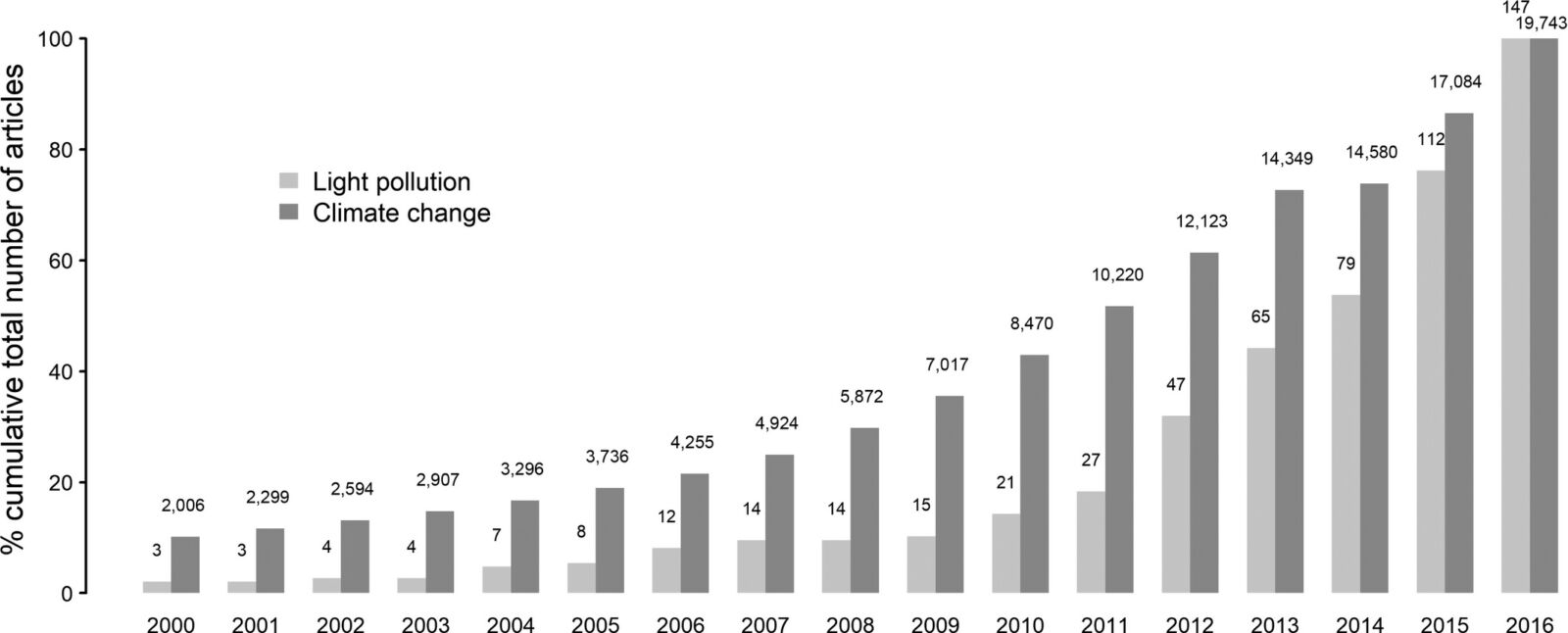 On s’appuie pour les paragraphes suivants notamment sur une présentation de Romain Sordello, alors chef de projet Pollution lumineuse et Trame verte et bleue à l’UMS Patrimoine naturel, datant de décembre 2018 et reprenant l’état de l’art sur les enjeux de pollution lumineuse et d’impact sur la biodiversité : https://tvb.espaces-naturels.fr/sites/default/files/Journee_echange/181220_-_pollution_lumineuse_sordello.pdf