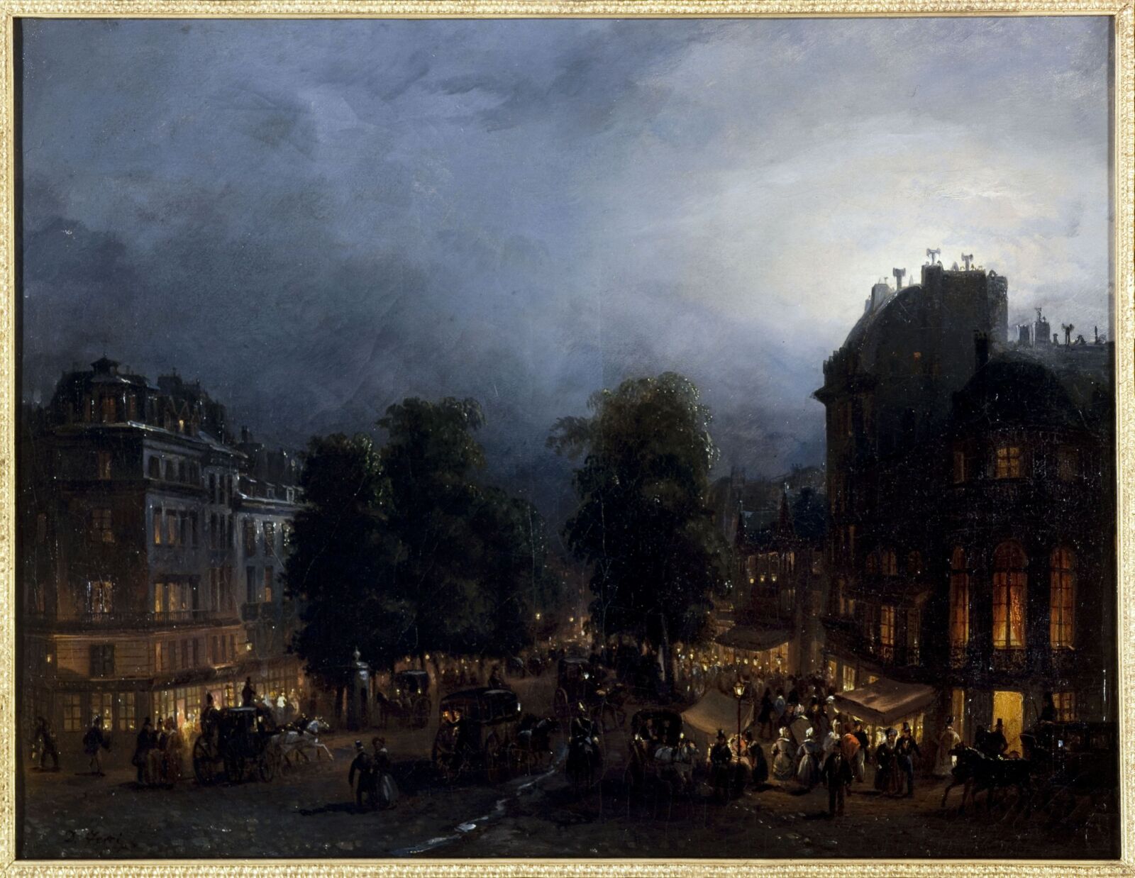 Au XIXe siècle, le Code civil napoléonien consacre l’inviolabilité de la nuit : les forces de police ne peuvent interpeller quelqu’un chez lui en pleine nuit. La loi assure à chacun la nuit comme espace de loisirs et de repos. C’est une forme de garde-fou, qui garantit à chacun le droit de profiter des loisirs permis par l’éclairage nocturne de la ville, tout en sanctuarisant le moment de repos qu’est la nuit. C’est la généralisation de l’éclairage au gaz qui va ensuite permettre à la nuit de devenir espace de travail et marque une bascule dans le rapport social à la nuit. Cette généralisation de l’utilisation du gaz ne s’est pas faite sans heurt. Utilisé d’abord pour éclairer les usines anglaises, son usage se propage rapidement dans les autres villes européennes. Le gaz fait l’objet de suspicion, sur ses dangers et ses potentielles nuisances (après la fin du suif, remplacé par des huiles végétales, le gaz marque le retour des odeurs dues à l’éclairage dans les rues des villes). Le déploiement de l’éclairage au gaz respecte aussi une certaine géographie sociale des villes : les premiers quartiers à être éclairés au gaz à Paris sont les quartiers bourgeois de l’Ouest, tandis que les faubourgs et quartiers populaires sont encore éclairés à la lanterne.