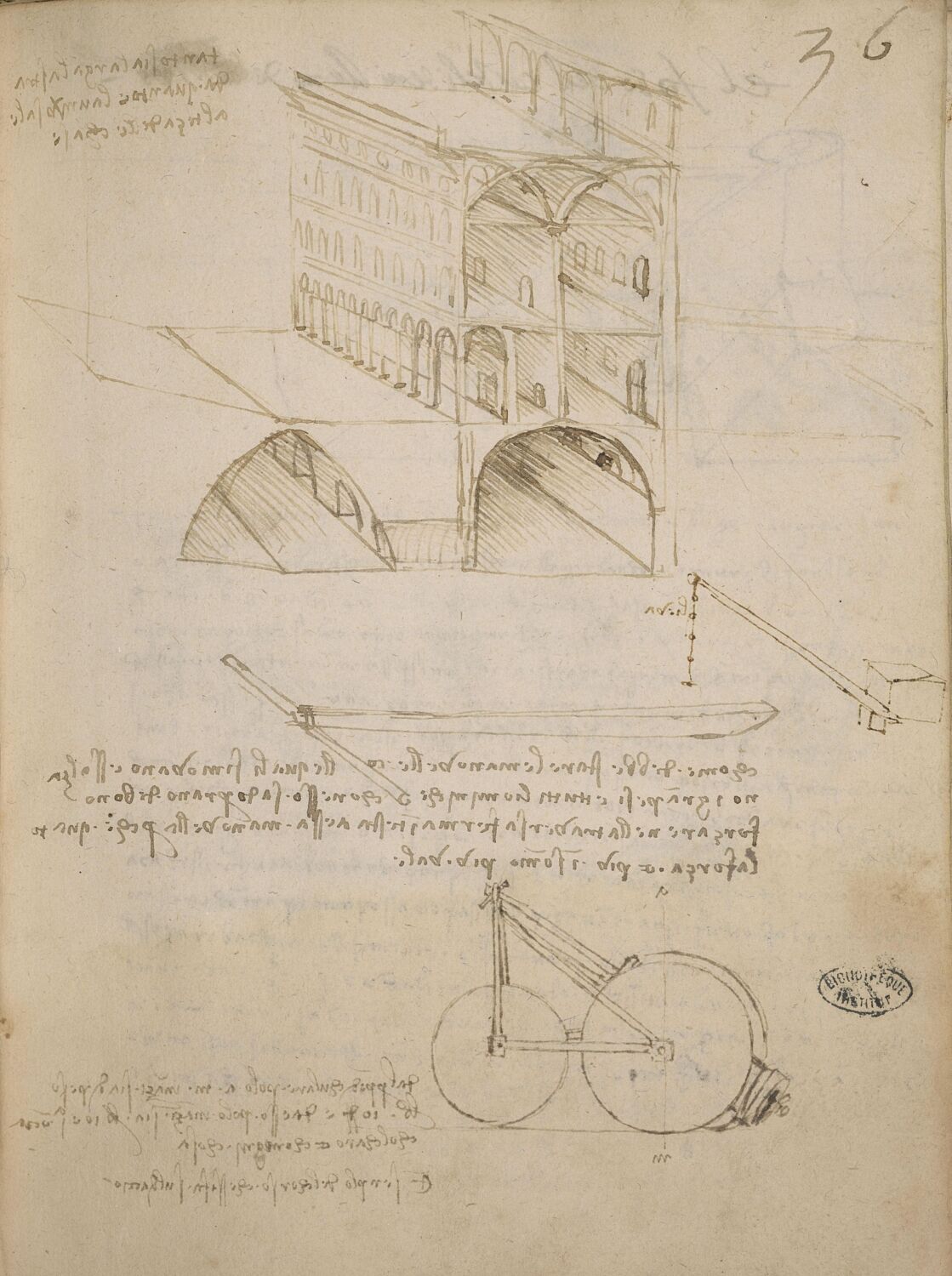 Comme c’est le cas pour l’anatomie, l’aéronautique ou encore la géographie, l’urbanisme souterrain contemporain retrouve des intuitions fondatrices dans les esquisses de « ville idéale » de Léonard de Vinci, vieilles de plus de 450 ans. Dans ces manuscrits conservés à l’Institut de France, se trouvent les plans en coupe d’une « ville intérieure » en sous-sol. Conscient des limites des grandes villes de son époque, surpeuplées et insalubres, Léonard de Vinci a travaillé à élaborer des modèles alternatifs opérant déjà la séparation des flux de circulations en les organisant sur deux niveaux. Le plan est commenté : « Et sache que si quelqu’un voulait parcourir la ville en utilisant uniquement les rues hautes, il pourrait le faire commodément ; et de même celui qui voudrait circuler en ne prenant que les basses. Dans les rues hautes ne doivent passer ni chariots, ni autres véhicules semblables : ces rues ne servent qu’aux personnes de qualité. Dans les rues basses passeront les chariots et autres transports destinés à l’usage et commodités du peuple ». Outre la distinction sociale appelée par l’époque, retenons que la ville d’agrément est laissée aux piétons en surface tandis que la logistique et les services s’enfouissent.