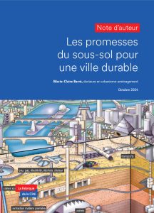 En quoi le sous-sol ou les espaces souterrains peuvent-il avoir encore davantage d’impact sur nos vies urbaines ? En quoi la fabrique de la ville a-t-elle intérêt à y prêter attention, à l’heure du dérèglement climatique ? Entre principe érigé en solution quasi-miracle et nouvelles réticences à l’atteinte d’espaces vierges, que dire aujourd’hui des « promesses du sous-sol » ? Sont-elles encore porteuses d’avenir, dans l’effort d’adaptation des villes denses ? Cette note s’emploie à faire un bilan des espoirs, des savoirs et des limites en reprenant plusieurs décennies d’études et de travaux. Elle approche de façon très marginale les enjeux géopolitiques, qui appelleraient un réinvestissement stratégique des sous-sols à des fins de protection civile, et s’attache plutôt à décrypter les tendances actuellement à l’œuvre dans la conception d’une ville climatiquement résiliente.