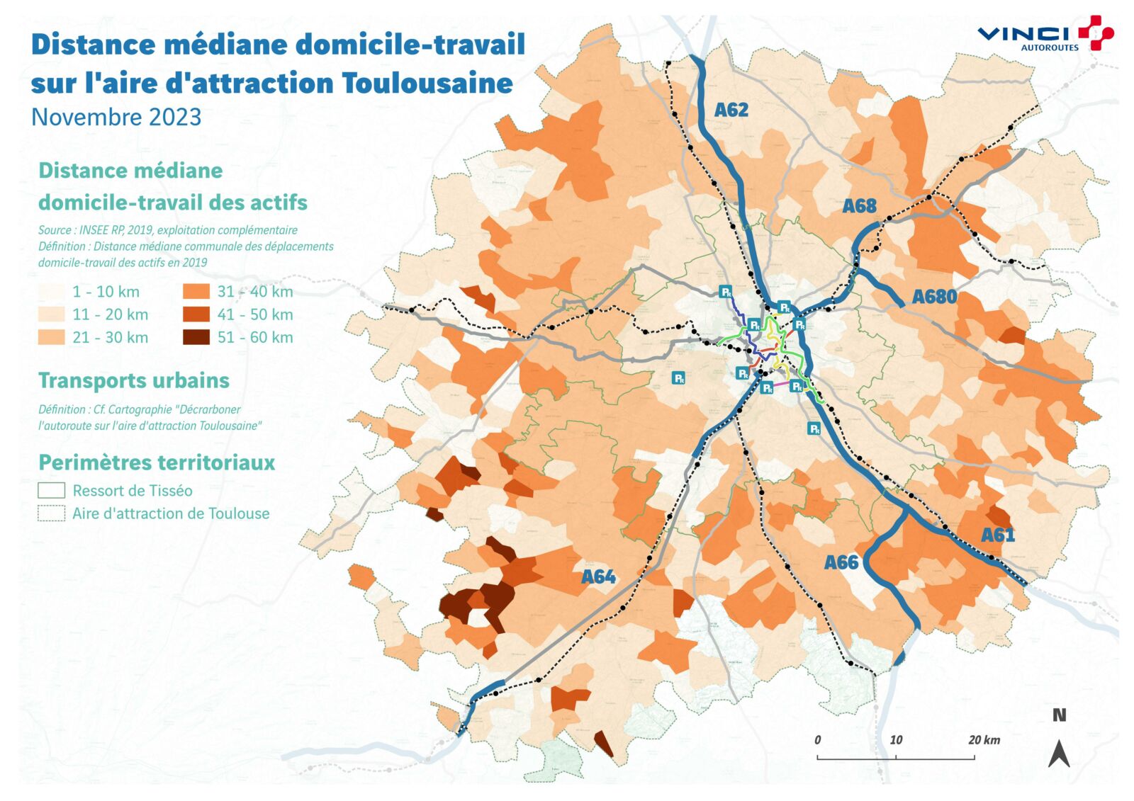 Lors du colloque du 27 février 2024, Julien Thomas, Directeur régional Sud-Ouest de VINCI Autoroutes, a pu exposer qu’à Toulouse, 30 % des actifs parcourent plus de 50 kilomètres par jour pour leurs trajets domicile-travail. La part modale de la voiture est de l’ordre de 80 %, elle atteint 100 % dans certaines parties éloignées du centre de l’agglomération. Le taux de pauvreté et la précarité énergétique, notamment liée aux transports, sont également plus élevés à mesure que la distance s’accroît et que les solutions de transport se raréfient.
