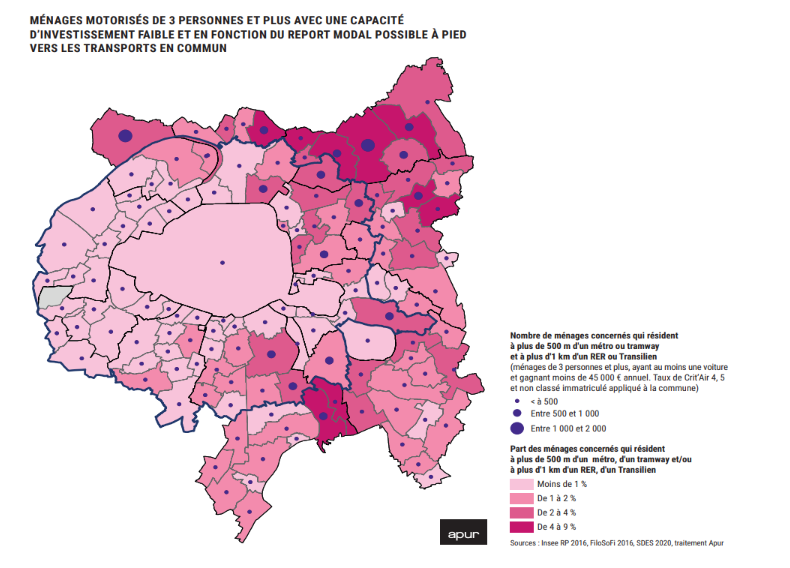 Dominique Bureau, Président du Conseil Économique pour le Développement Durable (CEDD), a rappelé, à l’occasion du colloque consacré aux transitions justes des mobilités, le 27 février 2024, que cette relation s’observe aussi en Île-de-France, où les ménages en situation de pauvreté et dépendants à la voiture sont particulièrement concernés par la mise en place des restrictions de circulation (Zone à Faibles Émissions, ZFE). Apporter à ces ménages des solutions alternatives serait donc un moyen d’améliorer leur situation économique en même temps que la qualité de l’air francilienne.