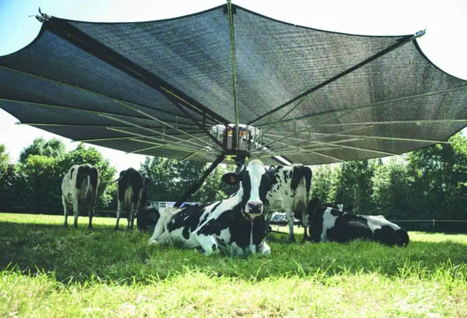 En France, l’impact de l’ombre sur le stress thermique des vaches est bien connu des producteurs laitiers. Les vaches souffrent assez vite de la chaleur. Elles vont donc produire moins de lait, ce qui a un coût. De plus il y a un effet retard sur le métabolisme des vaches dans les semaines et mois qui viennent, avec un animal qui ne produit pas autant de lait que d’habitude, et qui va aussi avoir des problèmes de pied pour des raisons de mauvaise circulation sanguine 44. Fournir de l’ombre, qui permet de réduire les charges thermiques sur le bétail jusqu’à 30 %, est donc essentiel pour réduire le stress thermique.