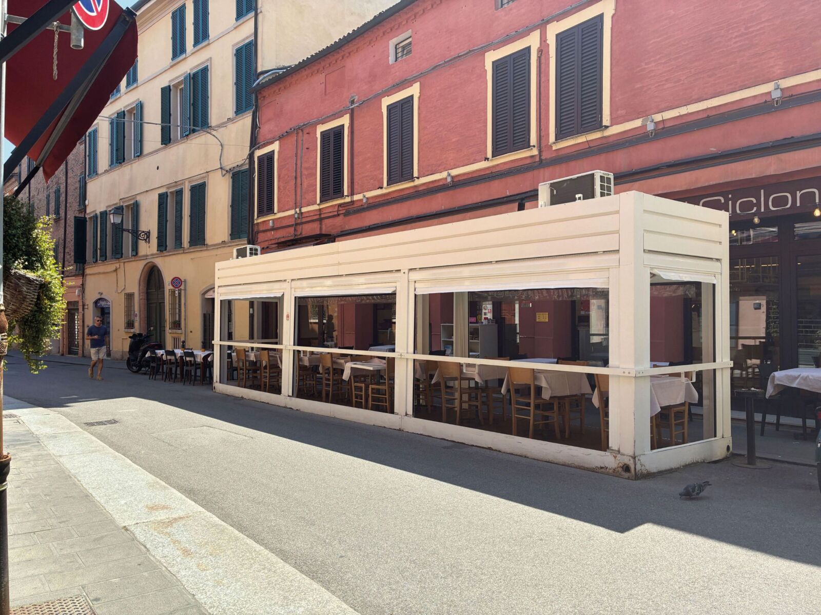 Le marché de Ferrare en Italie illustre quant à lui la manière dont un ombrage à grande échelle, qui recouvre toute la place du marché, peut résulter de l’addition de dispositifs d’ombrages individuels, disposés sur les camionnettes de chaque marchand, et rétractables dans un caisson. La fin du marché offre un fabuleux spectacle où chaque marchand replie son auvent, qui se plie en formant comme des vaguelettes et participe d’un hypnotique ballet des ombres 32.