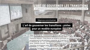 Quatre intervenants avaient la charge d’apporter, en guise de conclusion à cette année de travail, leurs éclairages à ces questions : Charlotte Halpern, chercheure au Centre d’études européennes et de politique comparée de Sciences Po ; Anne-Juliette Lecourt, secrétaire de la CFDT ; Gilles de Margerie, ancien Commissaire général de France Stratégie ; et Sébastien Soriano, directeur général de l’IGN. Cette synthèse se fait l’écho de leurs interventions et des échanges qu’elles ont suscités chez les participants.
