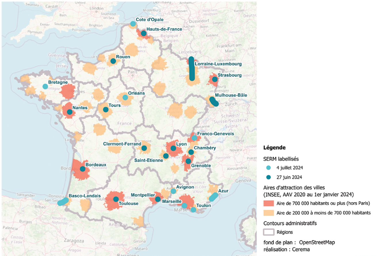 Pour en savoir plus sur la carte recensant les projets SERM labellisés selon leur taille37.