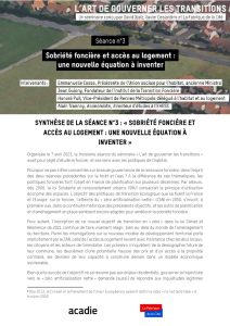 Bien que le succès de l’objectif ne se résume pas aux enjeux résidentiels, gouverner la trajectoire vers le « zéro artificialisation nette » demande (aussi) de répondre aux inquiétudes légitimes posées par la difficile équation entre des besoins en logement et des exigences écologiques qui vont en s’accroissant. Les quatre intervenants de cette séance ont chacun, au travers de leurs travaux ou de leurs fonctions, esquissé les contours de nouvelles variables permettant de la résoudre : Alain Trannoy (enseignant-chercheur en économie à l’EHESS) en interrogeant la formation de la valeur foncière, Jean Guiony (fondateur de l’ « Institut de la Transition foncière ») en soulignant les limites d’une approche de la ressource foncière ignorant la vie qui l’habite, Emmanuelle Cosse (Présidente de l’Union Sociale de l’Habitat et ancienne Ministre) et Honoré Puil (Vice-Président de Rennes Métropole délégué à l’habitat et au logement) en présentant les nouvelles marges de manœuvre et défis des acteurs politiques et du logement.