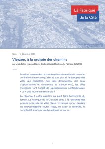 Autre opportunité touristique : Vierzon sera l’an prochain le point de départ de la septième étape du tour France. À la confluence de cinq cours d’eau, Vierzon se trouve également à l’intersection d’axes ferroviaires et autoroutiers, attestant d’une position géographique centrale. Comme le dit Daniel Changeux, directeur d’une agence immobilière, interrogé par Libération, « Vierzon, c’est pile-poil au centre de la France, vous allez partout en 2h3017 ». Voire moins : il suffit d’une heure trente aux Parisiens pour rallier Vierzon depuis la gare d’Austerlitz. La ville se situe en effet à l’intersection de la ligne historique reliant la capitale à Toulouse par Orléans et Limoges et de la ligne transversale reliant Nantes à Lyon par Tours. Une position avantageuse qui joua un rôle crucial dans le développement économique et industriel de la ville aux 19ème et 20ème siècles ; « le train est très important dans la compréhension de l’histoire de Vierzon et de son identité », note Laurent Aucher. La municipalité a conscience du potentiel qu’offre la situation de Vierzon et entend développer des activités liées au transport ferroviaire de marchandises. « Depuis 20 ans, le fret n’est plus une priorité nationale ; cependant, je crois à son redémarrage », confie Nicolas Sansu. « Dans ce domaine, Vierzon a une carte à jouer : une plateforme ferroviaire de huit hectares, au nord de la ville. Nous allons pouvoir remettre du fret ferroviaire et du rail-route, comme nous l’avons fait à l’est de Vierzon avec la plateforme Combronde, qui envoie des trains vers Le Havre et Fos-sur-Mer. Il faut profiter de cette infrastructure ferroviaire aujourd’hui très importante ».Décrites comme des havres de paix et de qualité de vie ou au contraire à travers ce qu’elles ne sont plus et ne sont pas (des villes qui comptent, des hubs d’innovation, des lieux d’opportunités et d’ouverture au monde etc.), les villes moyennes font l’objet de représentations contradictoires. « La » ville moyenne existe-elle ?